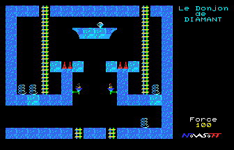 Prépare toi au pire, Crystann, car tu as décidé de ramener la précieuse statuette de jade cachée dans le Donjon de diamant. Ta folle aventure t'entrainera, à travers soixante salles, sur d'innombrables échelles, des cordes suspendues, des chutes interminables qui s'achèveront peut-être sur un des nombreux pics ensanglantés qui parsèment le donjon. Il te faudra même plonger dans les eaux bouillantes de la rivière souterraine qui traverse les caves ! Tu lutteras contre les immondes médusoïdes, creuseras des blocs de pierre, mais éviteras-tu les trappes cachées ? Courage ! La victoire t'attend...
