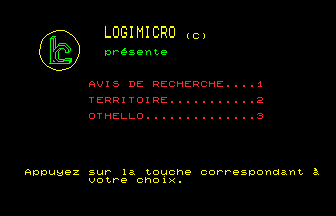 Editeur : Logimicro   •    Année : 1985   •    Catégorie : Jeu   •    Auteurs : Inconnus